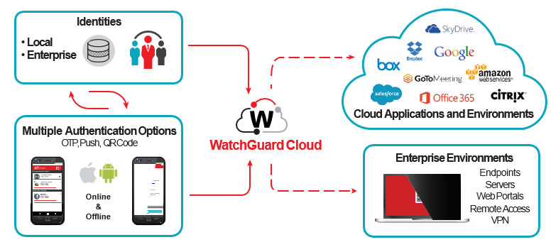 WatchGuard AuthPointはネットワーク、VPN、クラウドリソース、パソコンなど企業リソースを不正アクセスから守ります。
