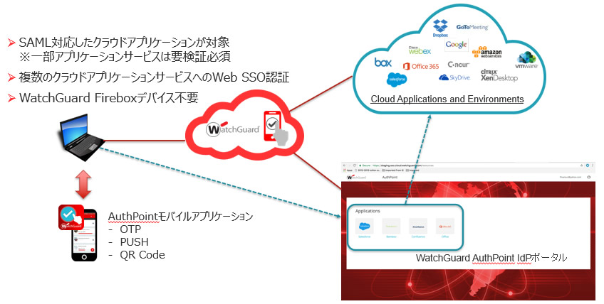 AuthPoint Web SSO認証によるクラウドアプリケーションサービスへの接続構成例