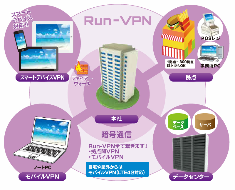 - 店舗や小規模拠点網をVPN接続する